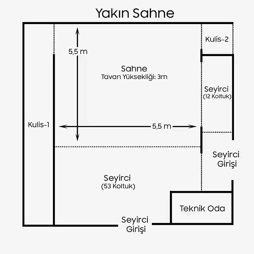 - 53 kişilik seyirci kapasitesi (Sahne kullanımına göre değiştirilebilir)